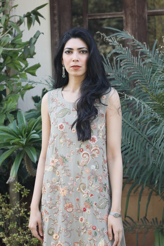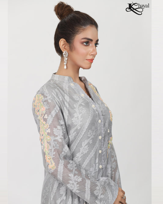 Grey with Peach Threadwork